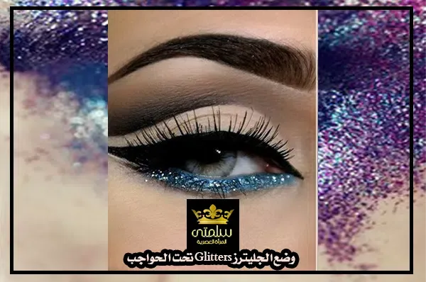 13- وأخيراً يتم وضع الجليترز Glitters تحت الحواجب علي لون مناسب للعين كالذهبي في الصورة الموضحة، كما يمكن وضع البعض القليل تحت العيون لتفتيحها.